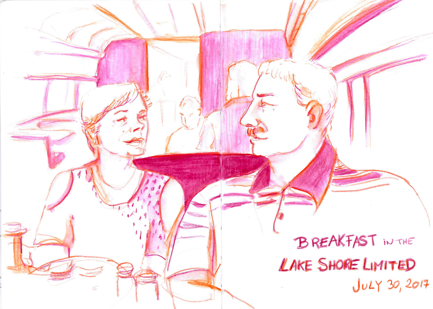 This sketch was made at the Bean, the two gentlemen were focused on the monument and I on them (and Elizabeth Alley in the background).